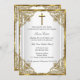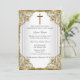 Invitation Pearle d'or blanc Damask Cross Baptism Christening