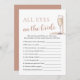 "Pearls & Prosecco All Eyes On The Bride Game" est une activité captivante de douches nuptiales conçue pour célébrer la future mariée dans le style. Les invités sont invités à participer à divers défis ou tâches qui mettent la mariée en vedette, comme deviner ses affaires préférées, partager des anecdotes amusantes ou offrir des conseils sincères. Avec la touche luxueuse de perles et l'effervescence de Prosecco, ce jeu élève la célébration, favorisant le rire, la camaraderie et les souvenirs chéris. Il crée une occasion capitale où toute l'attention est portée sur l'honneur et la célébration de la mariée alors qu'elle se lance dans son voyage vers le bonheur conjugal.