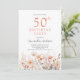 Jolie pêche 50e anniversaire invitation florale. Design fleur sauvage aquarelle. Facile à modifier le texte.