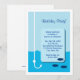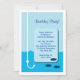La carte d'invitation Low Tide Fishing a une ligne de pêche et hameçon en eau de mer bleue avec trois poissons nageant vers elle. Idéal pour une fête d'anniversaire ou toute autre occasion. Customisez avec votre propre texte. © Matin 6