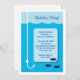High Tide Fishing carte d'invitation a une ligne de pêche et hameçon en eau de mer bleue avec trois poissons nageant vers elle. Cette invitation peut être utilisée pour une fête d'anniversaire ou toute autre occasion. Customisez avec votre propre texte. © Matin 6