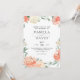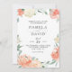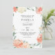 Une belle faire-part de mariage féminine encadrée dans une bordure florale douce et sage de pêche pastel, tourbières roses et crème, roses et fleurs mixtes avec feuilles et verdure. Une disposition de texte élégante est utilisée dans cette conception que vous pouvez facilement personnaliser avec vos détails mariages. Le jeu de couleurs fonctionne très bien pour les mariages au printemps et en été. Une série de papeterie mariage et de produits en papier est disponible dans ce schéma de conception et de couleurs.