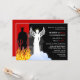 © Socialite Designs. Une invitation de pendaison de crémaillère amusante sur le thème du ciel ou de l'enfer. Le design intègre un diable dans les flammes et un ange dans les nuages. Une fête de pendaison de crémaillère amusante pour réchauffer la nouvelle maison.