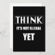 Vous cherchez un moyen amusant et spirituel d'express de votre côté rebelle? Découvrez ensuite ce design graphique tendance "Think It's Not Illegal yet" disponible sur une variété de produits Zazzle! Que vous cherchiez un t-shirt, une tasse, un étui téléphonique ou tout autre objet, ce design est sûr de faire une déclaration. La police blanche et audacieuse et l'arrière - plan noir font ressortir ce design, tandis que le message ironique est sûr de faire parler les gens. C'est parfait pour quiconque aime contester le statu quo et n'a pas peur de dire ce qu'il pense. Alors allez-y et ajoutez une touche d'humour et de rébellion à votre vie avec ce design "Think It's Not Illegal yet". C'est un excellent début de conversation et le cadeau parfait pour quiconque aime repousser les limites.