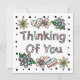 Fleurs dessinées à la main rose et bleu et pensant à votre carte pour un ami ou un membre de la famille.