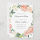 Invitations florales de fiançailles avec des roses d'aquarelle et des pivoines dans les tons rose vif, pêche et crème avec la verdure d'eucalyptus. Idéal pour les fêtes de fiançailles thématiques du jardin du printemps ou de l'été.