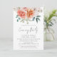 Invitation Peonies Peach Coral Qr Code Mariage Soirée
