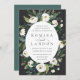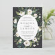 Notre faire-part de mariage White Peony entoure vos détails du jour de mariage avec un cadre ovale gracieux de verdure aquarelle peinte, feuillage botanique et fleurs de roses et de pivoines blanches.