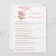 Achetez cette carte modifiable et profitez de la carte Quiz de haute qualité Baby shower Nursery Rhyme pour votre événement! Ballons roses et or, ours en peluche. Activités baby showers ! RÉPONSES : 1. pique de poivre mariné; 2. boucher, boulanger, bougeoir; 3. mur; 4. femme de l’agriculteur; 5. grâce; 6. trois sacs remplis; 7. Sa femme ne pouvait pas manger maigre; 8. neuf jours; 9. mitaines; 10. gâteau; 11. embrassait les filles; 12. tuffet; 13. Tarte de Noël ; 14. Pour donner un os au pauvre chien; 15. pour son souper; 16. pieman; 17. cloches d'argent, coquillages, jolies domestiques; 18. cochon.
