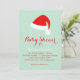 Écriture de ruban fantaisie et chapeau de Père Noël rouge accent cette invitation de baby shower vert menthe, ce qui le rend parfait pour la fille ou garçon hiver, Noël ou douche de temps de vacances.