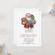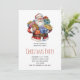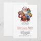 Une invitation à une fête de Noël avec une image de Noël mignonne. Un Père Noël traditionnel dans sa tenue rouge classique. Ses bras sont chargés de cadeaux. Prêt à apporter des cadeaux à tout le monde.