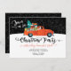 Célébrez les fêtes avec ce Père Noël mignon qui livre des cadeaux dans son camion orange rouge, avec l'arbre de Noël labourant à travers la neige. Jolie typographie de script. Parfait pour votre prochaine fête de Noël !