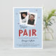 Parfait pour les amateurs de poker ou les parties de fiançailles de casino, nos invitations de fiançailles sur le thème du casino comprennent une paire de cartes de jeu avec les photos et les initiales du couple, et "la paire parfaite" sous en lettrage style Vegas rétro. Ajoutez les détails de votre partie de fiançailles à l'aide des champs de modèle fournis.