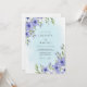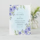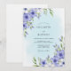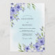 Delicate periwinkle blooms and lush green foliage adorn this ethereal design. A soft watercolor wash creates a serene backdrop, evoking a romantic and dreamy atmosphere for your special day. The composition features abundant floral clusters, hinting at anemones and budding leaves.