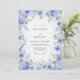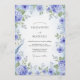 Delicate watercolor blooms in soft periwinkle hues create an ethereal atmosphere. Lush greenery entwines with painterly floral accents, evoking a romantic and artistic feel. This design is perfect for a serene and elegant union.
