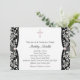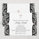Invitation Perle Croix Rose Noir Damassé Baptême