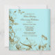 Invitation Perle sarcelle fleur d'or 50e anniversaire de mari