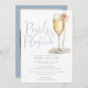 Cette perle de script bleu poussiéreux et élégante et l'invitation à la douche de mariée de Prosecco peuvent être personnalisés avec toutes vos informations spéciales d'événement et photo et le code QR du registre au verso. Conçu par Thisisnotme©