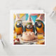 Une illustration super mignonne de perroquets mangeant un gâteau d'anniversaire et portant des casquettes de fête. C'est la carte idéale pour les amateurs de perroquets et d'oiseaux. La carte peut être entièrement modifiée et personnalisée selon vos besoins.