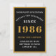 Invitation Personalized 40th Birthday 1986 Elegant Black Gold