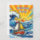 Personalized birthday party invitations with a cute nautical pop art oceanic theme. Waves, a sun, sailboat and a shark blue, yellow and red pop art style graphics. Add party info in the personalize area. Awesome invitations for a maritime, nautical or oceanic birthday party for a little boy!