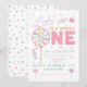 Célébrez votre enfant d'un an avec ce thème d'anniversaire 'Sweet One' ! Personnalisez cette invitation avec tous les détails de votre fête ! Cette collection pour fille 'Sweet candy' pour le premier anniversaire présente une palette de couleurs pastel doux avec des icônes de bonbons.