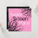 Conception de thème rose et noir, Sweet 16 Sixteen Birthday Party Invitation, rose vif avec des tourbillons noirs. Ajoutez vos informations de partie personnalisées à l'arrière. Ce design élégant, rose et noir, est une invitation fantastique à l'Sweet sixteen !