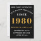 Pour ceux qui sont nés en 1980 et fêtent leur fête d'anniversaire, nous avons la carte d'invitation idéale. L'arrière - plan noire au design blanc et or est simple et élégante. Customisez facilement le texte à l'avant et à l'arrière de cette carte d'invitation d'anniversaire en utilisant le modèle fourni. Une partie de la gamme de normes d'établissement de cartes, de fournitures de fête et de cadeaux.