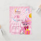 Caricature pour chiot rose mignon d'anniversaire avec un nez en forme de coeur en rose, yeux bleus et un col rose foncé ruban. Portant un casquette d'anniversaire, tenant des ballons d'anniversaire et un cadeau avec un arrière - plan confetti, et des rayons brillants roses. Adorable invitation pour votre petite fille fête d'anniversaire! Facile à personnaliser en modifiant ou en supprimant le texte.