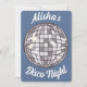 Invitation personnalisée pour une fête d'anniversaire disco. L'invitation montre une illustration de visages avec une boule à facettes. Invitation parfaite pour un anniversaire, un enterrement de vie de jeune fille ou une soirée entre filles.