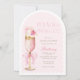 Cette magnifique invitation présente une verrière en perspective dorée et rose ornée de délicates fleurs roses et d'un arc rose. Le design est parfait pour un brunch chic sur le thème des pétales et du Prosecco et une fête à bulles. Doté d'une calligraphie de script gracieuse et d'élégants détails floraux roses, cette invitation allie sophistication moderne et charme intemporel. Customisez-le avec les détails de votre événement pour créer un faire-part captivant et mémorable.
