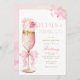 Cette magnifique invitation présente une verrière en perspective dorée et rose ornée de délicates fleurs roses et d'un arc rose. Le design est parfait pour un brunch chic sur le thème des pétales et du Prosecco et une fête à bulles. Doté d'une calligraphie de script gracieuse et d'élégants détails floraux roses, cette invitation allie sophistication moderne et charme intemporel. Customisez-le avec les détails de votre événement pour créer un faire-part captivant et mémorable.