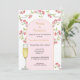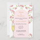 Élégante invitation de fête de mariage rose et or Pétales et Prosecco avec des fleurs de cerisier aquarelles entourant un cadre en arche. Parfait pour les fêtes de mariage de printemps/été.