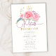 Une invitation à la douche nuptiale "Petals and Prosecco", élégante et moderne, avec de délicats roses d'aquarelle et d'autres fleurs et verdure et deux flûtes de champagne doré stylisées (pas d'or véritable, c'est un effet numérique), ainsi que de la calligraphie moderne.