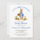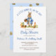 Peter lapin avec des glands automne baby shower invitation modèle téléchargement instantané numérique. Un mignon lapin dans une veste bleue avec des glands de corne de cacao et des feuilles de chêne pour un baby shower de bébé garçon
