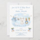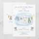Une charmante livraison de M. McGregor's Garden! L'invitation présente un étendoir d'aquarelle douce suspendu au centre, arborant fièrement de minuscules objets adorables, chacun subtilement orné de Peter Rabbit. La scène est complétée par des arcs bleu foncé tenant deux bouquets de carottes fraîches dans un style d'aquarelle douce. Ajoutez facilement vos propres détails et changez le style de police, la couleur de taille et le placement si vous le souhaitez. Cette invitation est une belle tenue, invitant vos invités à partager l'anticipation "désespérée" de l'arrivée de votre bébé garçon!