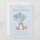 Célébrez le premier anniversaire d’un petit garçon avec cette invitation festive de Peter Rabbit, mettant en vedette le lapin bien-aimé tenant un tas de ballons bleus, un avec un grand nombre blanc "1". Entouré de cadeaux pastel et de deux amies de souris joyeuses en casquettes de fête, Peter Rabbit est habillé de sa veste bleue emblématique et d'un casquette de fête assorti. Conçu sur un arrière - plan bleu doux avec des arrosées de confettis colorées, ce design de style aquarelle est fantasque, charmant, et entièrement personnalisable pour votre célébration spéciale.