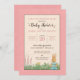 Invitation toute votre famille et des amis à votre baby shower à thème Peter Rabbit avec ces invitations à point pois rose doux.