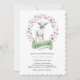 Petite invitation Baby shower d'agneau avec bannière verte - parfait pour le printemps, pâques ou un baby shower fille à tout moment de l'année. Le design est composé d'un mignon petit agneau blanc encadré d'une couronne de fleurs de gribouillis et de feuilles et écrit avec "Un petit agneau est en route". S'il vous plaît, envoyez-moi un message si vous voulez ce design pour les produits correspondants.