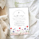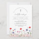 Été, printemps Minimaliste rose, bleu, rouge petit fleur sauvage floral croix de prairie à baptême baptisant invitation. Pour modifier les couleurs et les polices, choisissez de modifier cette conception pour ouvrir d'autres options de personnalisation.