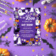 Petit boo Halloween baby shower super marguerites style rétro modèle invitation instantanée télécharger, joli Jack-o'-lanternes, fantômes, chat noir, toiles d'araignée orange blanc noir violet couleurs