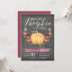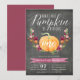 Tombent amoureux de ces invitations rustiques et élégantes pour l'anniversaire des enfants. Le design présente une citrouille à l'aquarelle orange ornée de fleurs bordeaux, roses et orange et de feuillage vert sur un fond de tableau noir rustique. "Notre petite citrouille grandit" apparaît en haut dans une écriture calligraphique chic, avec l'âge de votre enfant inscrit sur la citrouille. L'exemple montré est pour un premier anniversaire. Personnalisez avec les détails de votre fête d'anniversaire ci-dessous en lettrage blanc. Les cartes sont de couleur bordeaux marsala uni au verso.