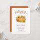 Fêtez la future maman avec cette Invitation du Baby shower Citrouille de l'automne. Doté d'un charmant citrouille d'aquarelle entouré de tournesols et de fleurs d'automne, ce design est parfait pour un baby shower de saison. Les détails chaleureux et rustiques ainsi que les accents floraux créent un look élégant et cosy, idéal pour célébrer la fête de la future maman en automne. Customisez facilement le texte, les polices et les couleurs à l'aide des outils de conception, ou téléchargez instantanément pour une invitation magnifique et unique.
