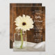 Invitez vos invités à poursuivre la fête le matin après la cérémonie de mariage avec la charmante invitation de brunch après mariage Mason Jar et White Daisy Country. Cette invitation personnalisée pour un petit-déjeuner ou un déjeuner après le mariage, de style rustique et ranch élégant et décontracté, présente une photographie florale numérique charmante d'un pot de conserve en verre rempli d'une seule fleur de gerbera blanche et un fond en bois de grange brun patiné. Une parfaite source d'inspiration pour votre célébration de fête de grange décontractée.