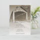 Invitez vos invités à célébrer les jeunes mariés le matin après leur cérémonie de mariage avec la charmante invitation au brunch de mariage rustique sous le pont couvert. Cette invitation personnalisée pour le petit-déjeuner ou le déjeuner d'après-mariage sous le pont couvert présente une photographie sépia numériquement améliorée et charmante du pont couvert historique et patiné Nevins construit sur le ruisseau Little Raccoon sur CR130 dans le comté rural de Parke dans l'Indiana. Parfait pour un thème de mariage champêtre élégant ou un thème de mariage au pont de bois élégant.