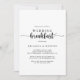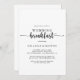 Cette calligraphie minimaliste invitant au petit-déjeuner mariage est parfaite pour un événement rustique. Le design sobre et élégant présente une typographie de script classique et sophistiquée en noir et blanc.