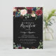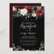 Cette invitation rustique au petit-déjeuner botanique mariage noir est parfaite pour une famille et des amis classiques, après le petit-déjeuner du mariage. Le design est composé de fleurs bordeaux, rouges, navy, bleues et rousses rayonnantes et gracieuses peintes à la main dans un arrière - plan noir, inspirant beauté naturelle.