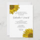 Célébrez les jeunes mariés le matin après leur cérémonie de mariage avec la jolie invitation Petit Déjeuner Tardif aux Tournesols Jaunes après Mariage. Cette invitation simple mais élégante personnalisée avec des fleurs estivales ou automnales pour le petit déjeuner ou le déjeuner après mariage présente des tournesols jaunes ornant les coins sur fond blanc. Parfait pour votre réception de mariage et célébration en plein air en été.