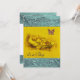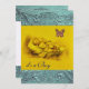 Elégant, coloré drôle style vintage fleuri design d'arrivée bébé avec de belles fleurs bleues vertes, papillons et tourbillons et bébé dormant en jaune or par Bulgan Lumini (c)