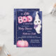 Petit boo Halloween mignon bébé fille fantôme baby shower modèle invitation instantanée téléchargement. Un mignon bébé fantôme aquarelle citrouille rose sur un arrière - plan de nuit étoilé foncé pour le baby shower à thème Halloween.